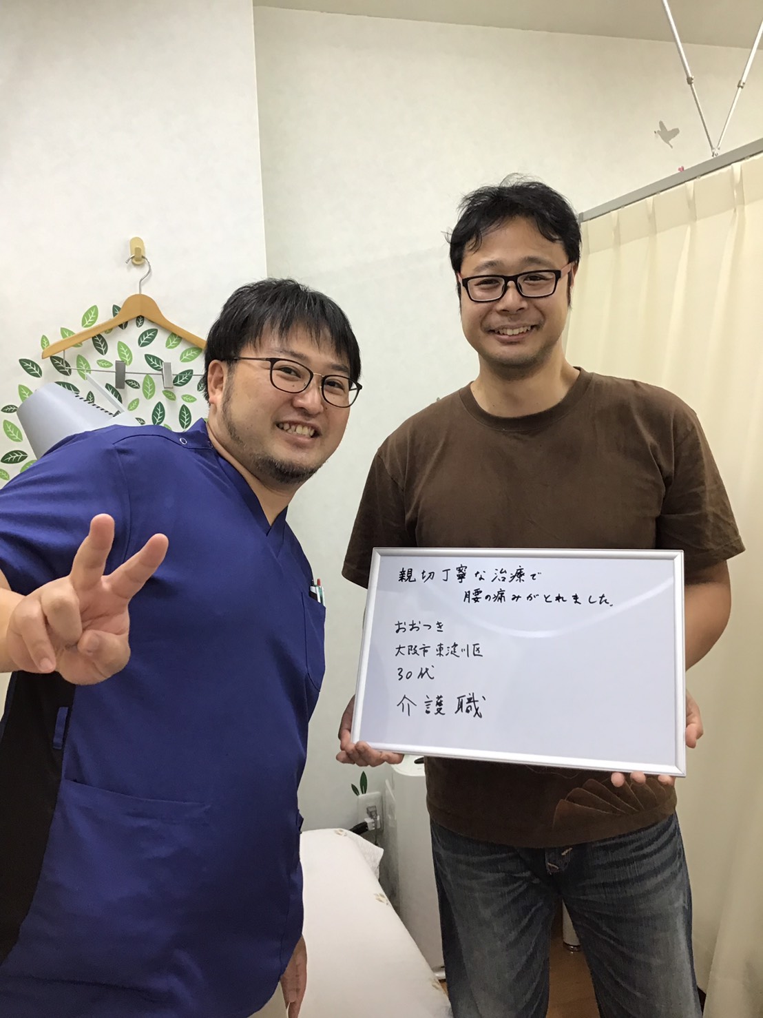 おおつき様:大阪市東淀川区(30代・男性)介護職 | 阪急線塚口駅より徒歩3分!西﨑鍼灸整骨院。